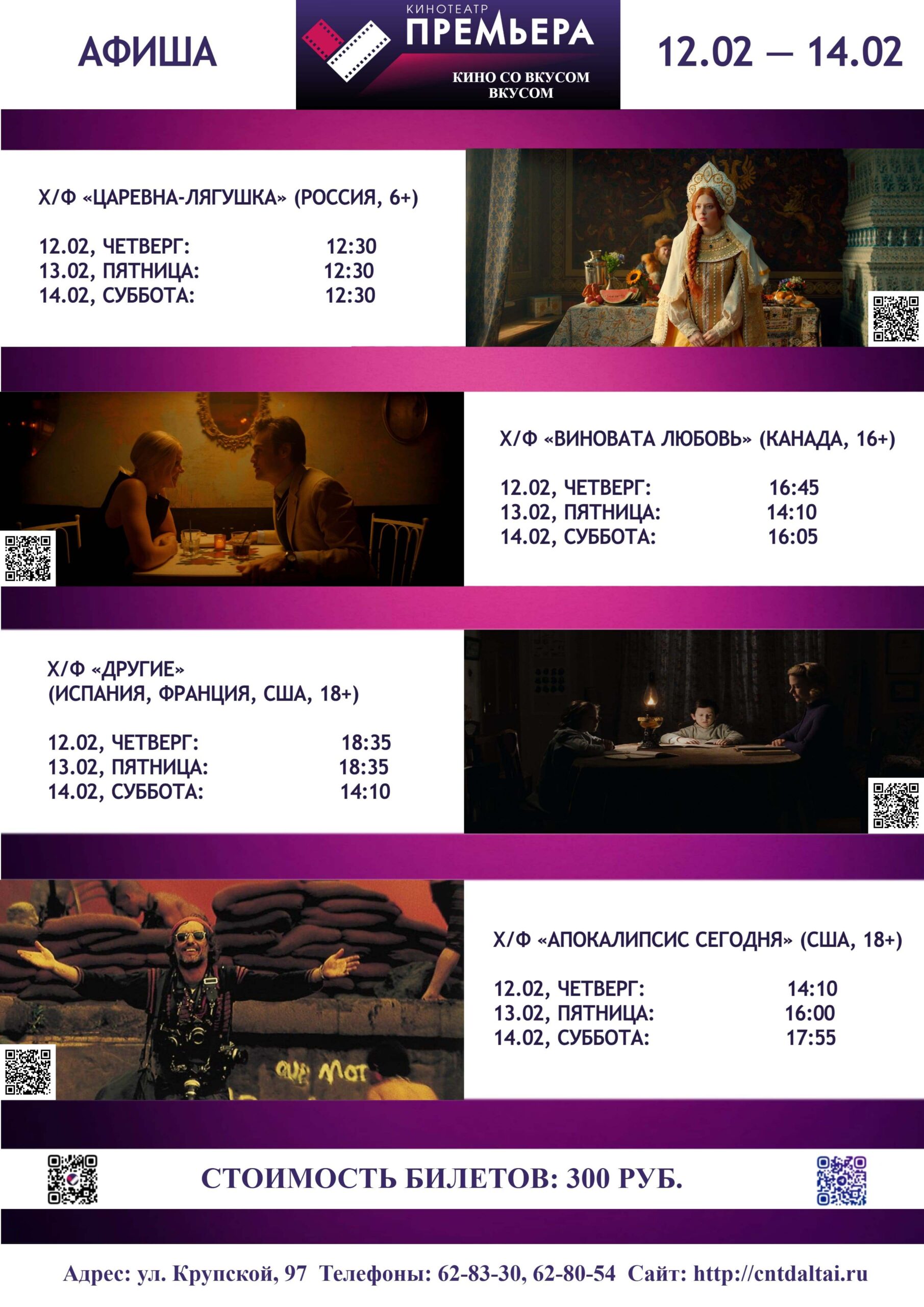 10 февраля в кинотеатре «Премьера» состоятся бесплатные показы советских фильмов. 12:00 – «Если бы я был начальником» (1980, 12+) Показ посвящён 110-летию народного артиста РСФСР Готлиба Ронинсона. Всенародно любимый актёр,…