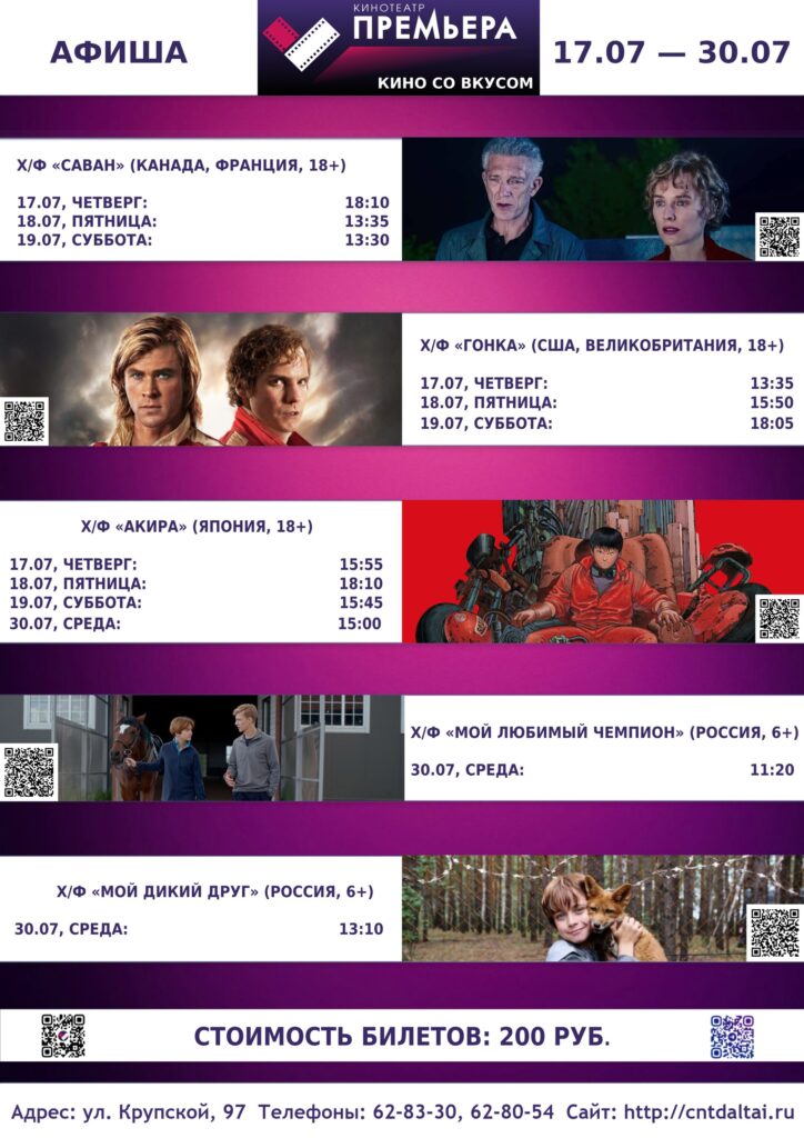Афиша кинотеатра «Премьера»