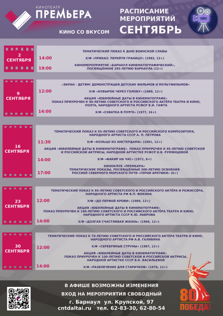 Читать “Военный фильм и история барнаульского кино: как пройдёт 2 сентября в кинотеатре «Премьера»” »