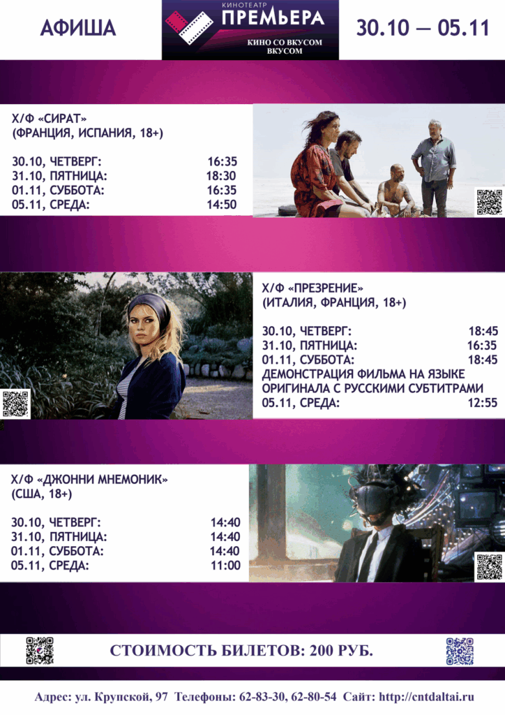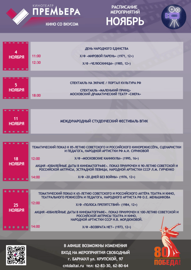 Афиша социальных кинопоказов кинотеатра «Премьера»