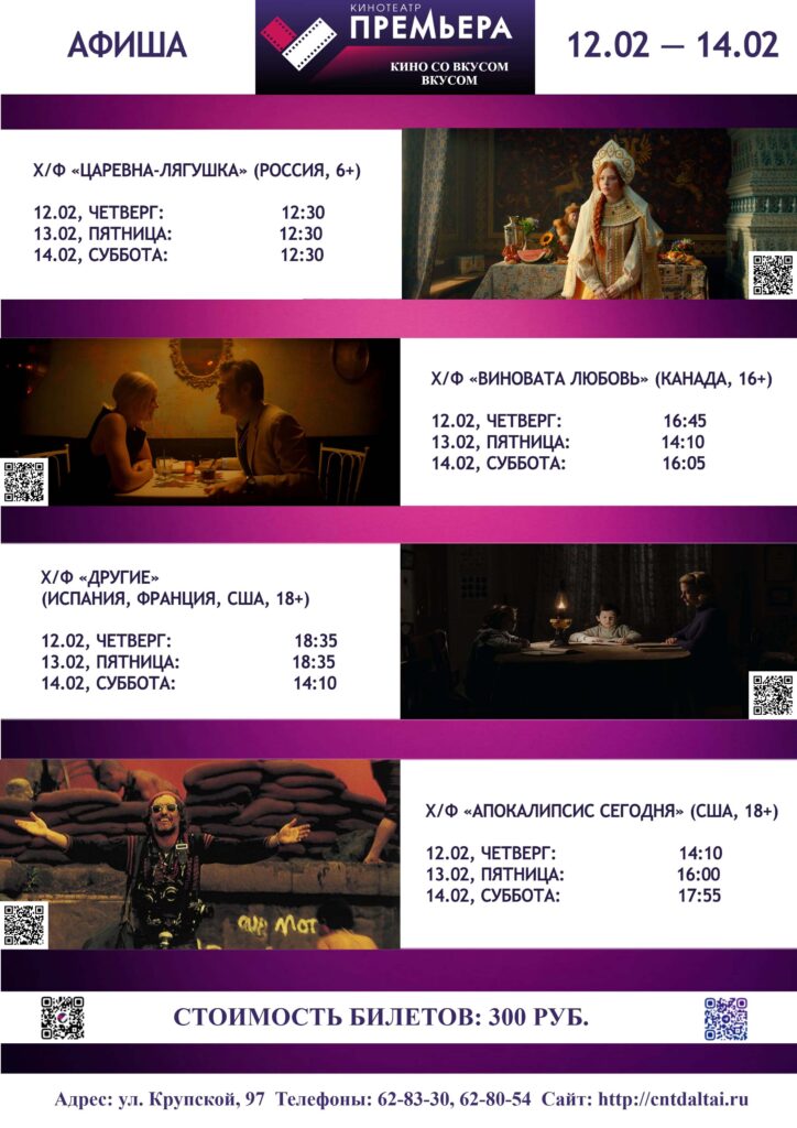 Афиша кинотеатра «Премьера»