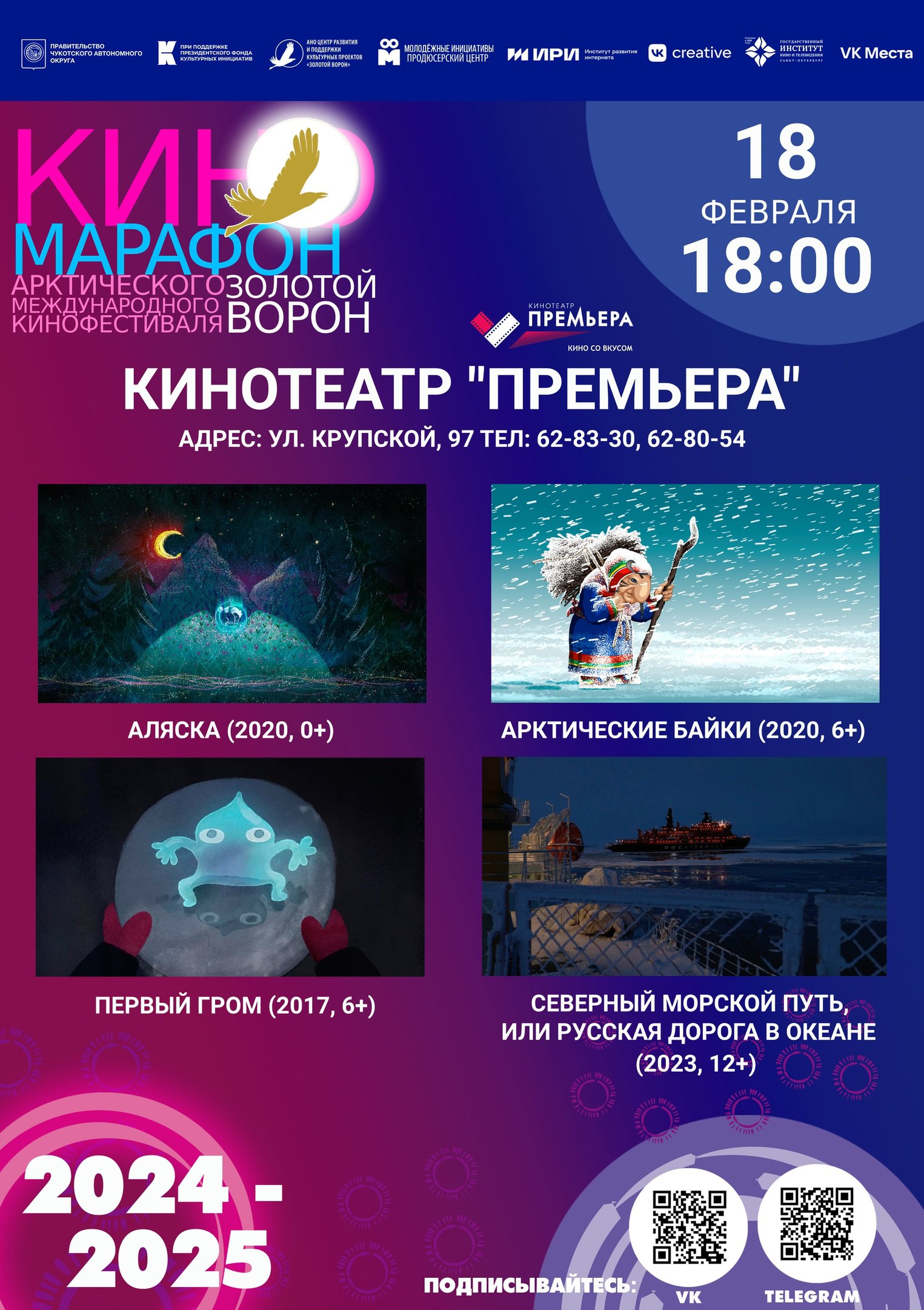Для справки: Киномарафон – это масштабное мероприятие Арктического международного кинофестиваля «Золотой ворон», направленное на сотрудничество с учреждениями культуры и образования по всей России. Миссия Киномарафона — вне зависимости от местоположения предоставить каждому учреждению возможность показывать хорошее фестивальное и зрительское кино, а каждому автору обеспечить широкий зрительский охват.