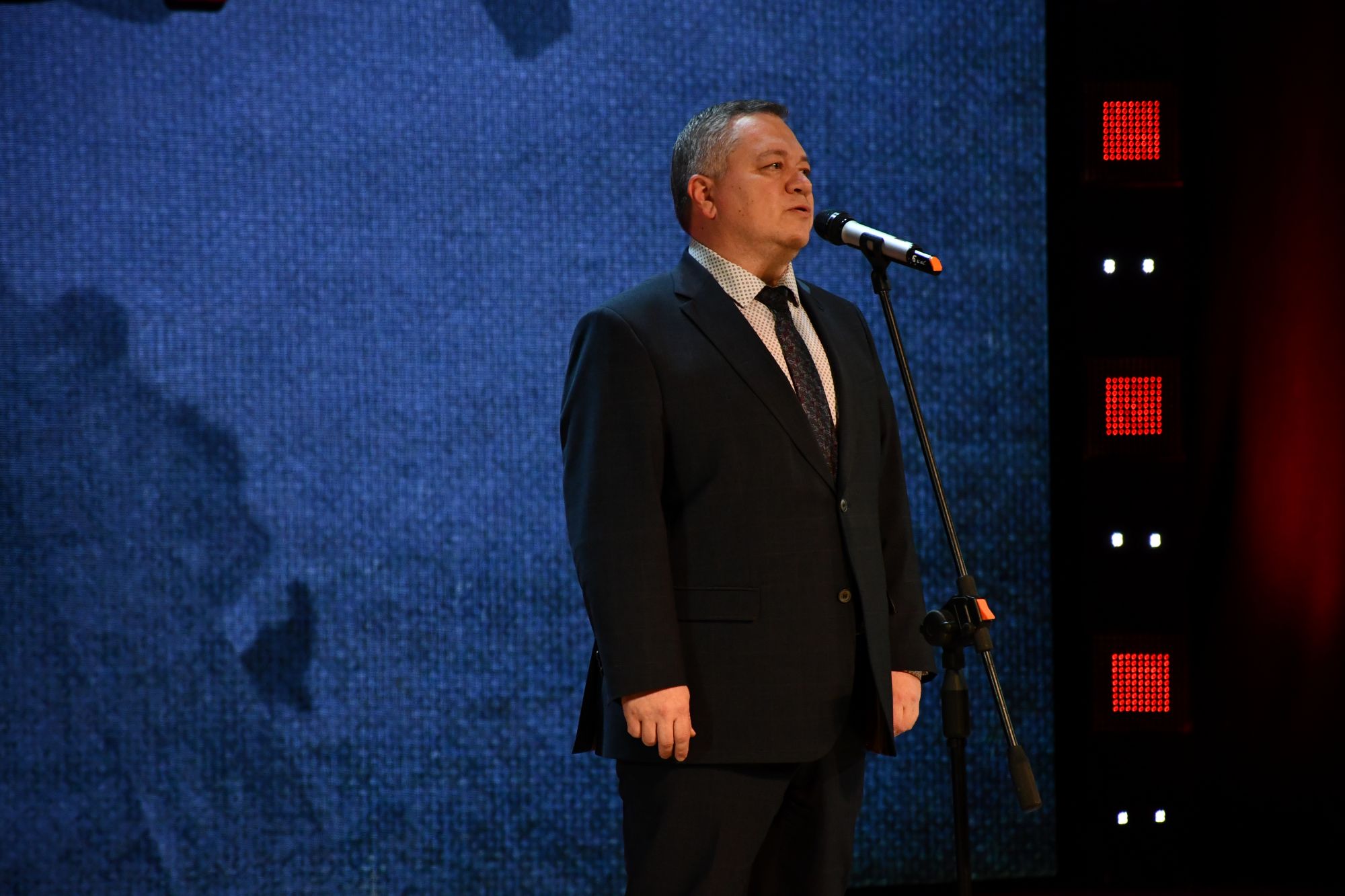 С приветственным словом к участникам и зрителям концерта обратился Юрий Геннадьевич Абдуллаев, заместитель Председателя Правительства Алтайского края. Он сказал о вкладе Алтайского края, который по праву можно назвать землей героев, в победу над врагом, отметив, что память о тех годах будет храниться в сердцах россиян всегда, а также от имени Губернатора Алтайского края поздравил всех, кто душой болеет за нашу Родину, с наступающим Днем защитника Отечества.
