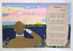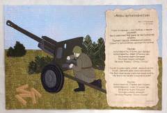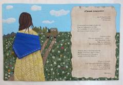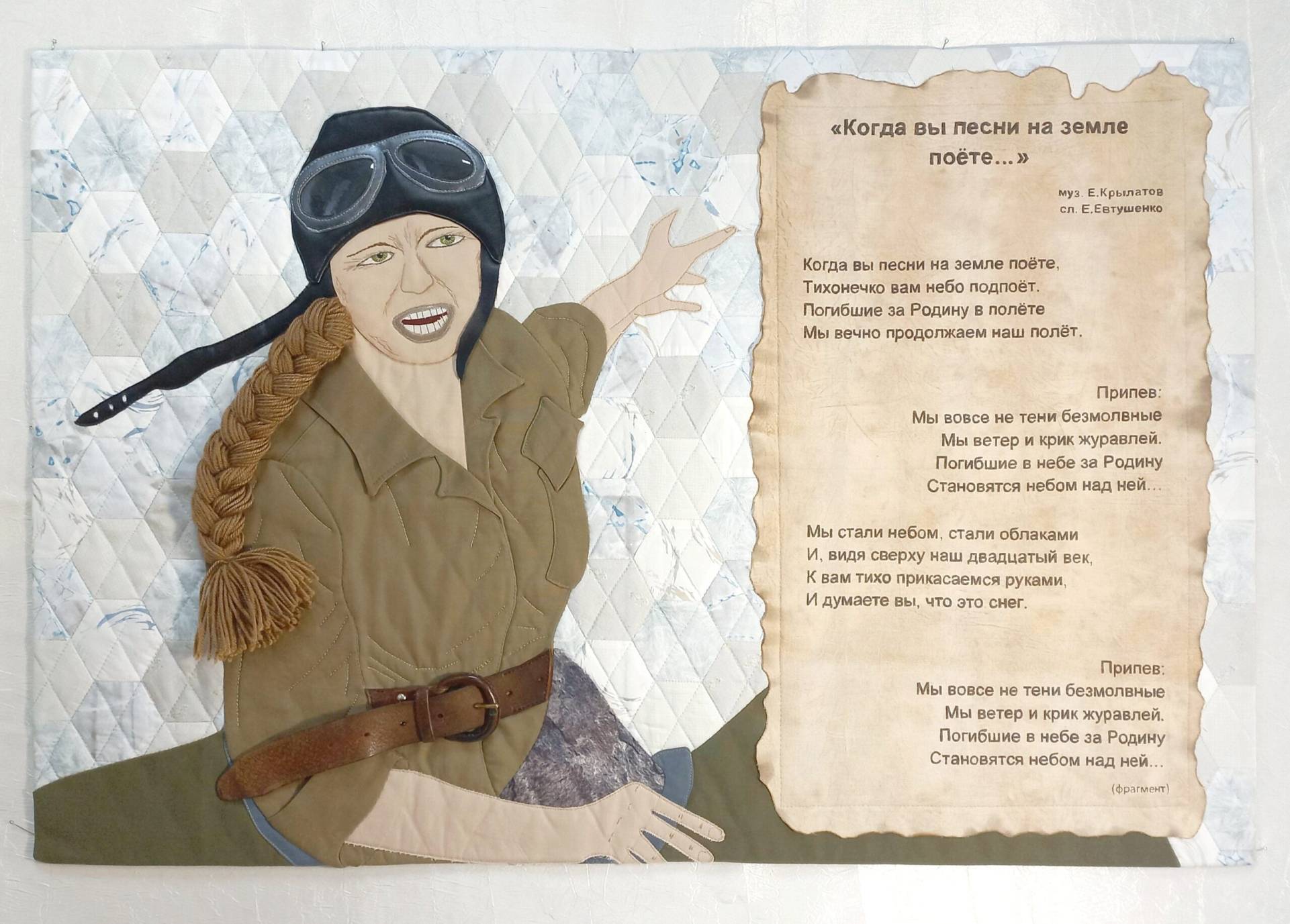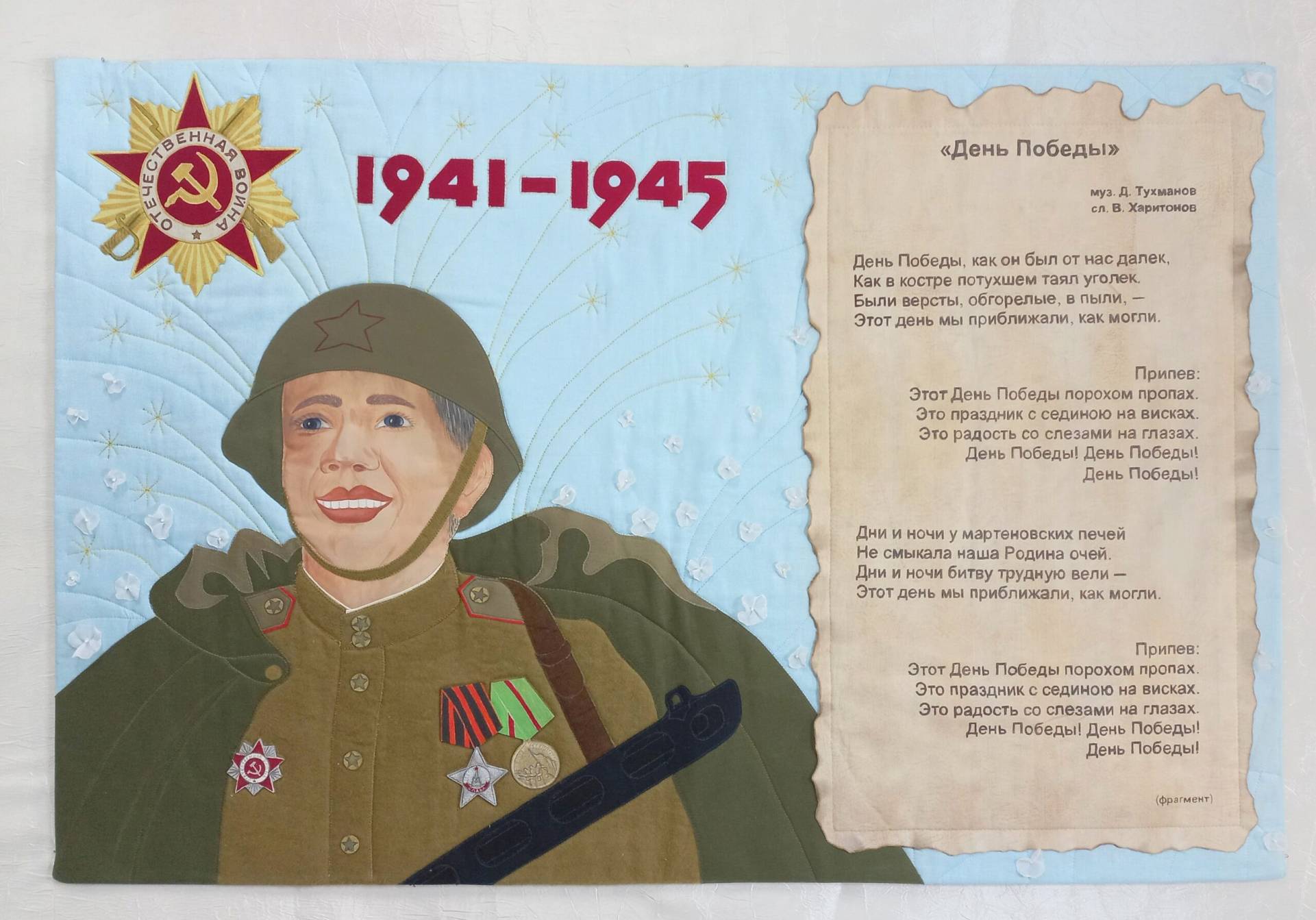 Выставка посвящена героическому времени, памятным страницам истории нашей страны, запечатленным в гениальных стихах и музыке военной и послевоенной поры. Тексты этих произведений стали сюжетами текстильных панно.
