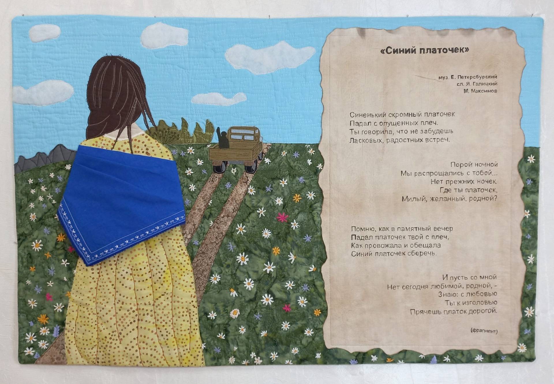 Клуб мастеров лоскутного шитья «Лоскутная пятница» Алтайского государственного Дома народного творчества представит на этой выставке творческий проект «Я бы с песни начал свой рассказ…» (куратор проекта Наталья Степкина), в который вошло семь полотен, выполненных мастерами клуба: «Марш артиллеристов» (Галина Илясова), «Когда вы песни на земле поете…» (Наталья Степкина), «На поле танки грохотали…» (Зинаида Токачева), «Синий платочек» (Елена Гукова), «В землянке» (Виктория Шевченко), «Журавли» (Ольга Ракитская), «День Победы» (Наталия Кузнецова).