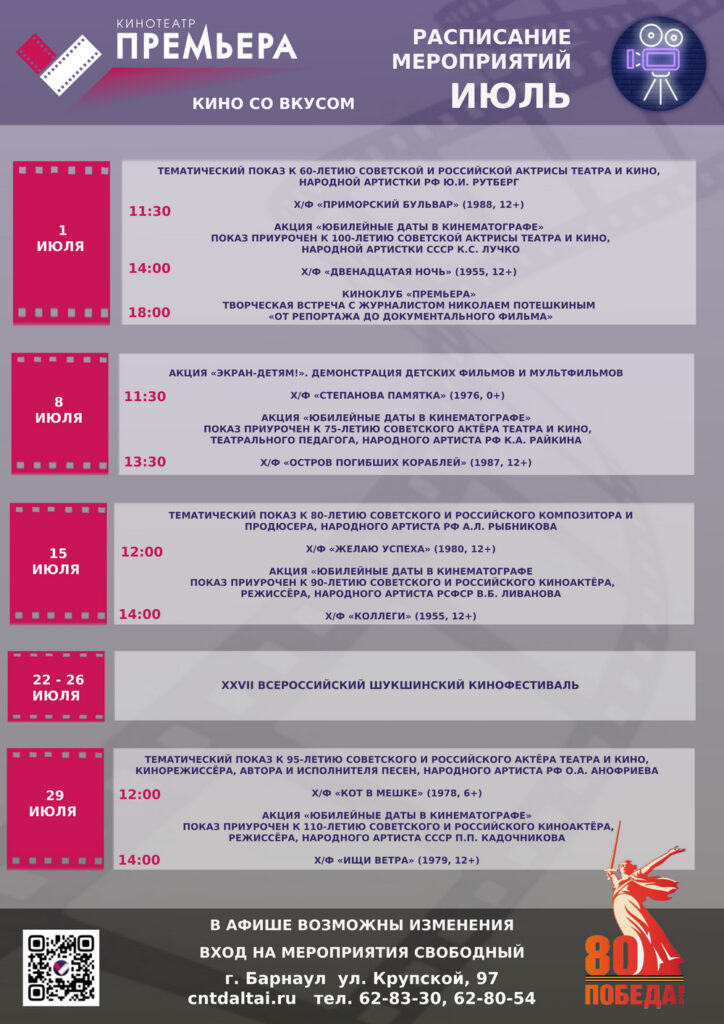 Афиша социальных кинопоказов кинотеатра «Премьера»