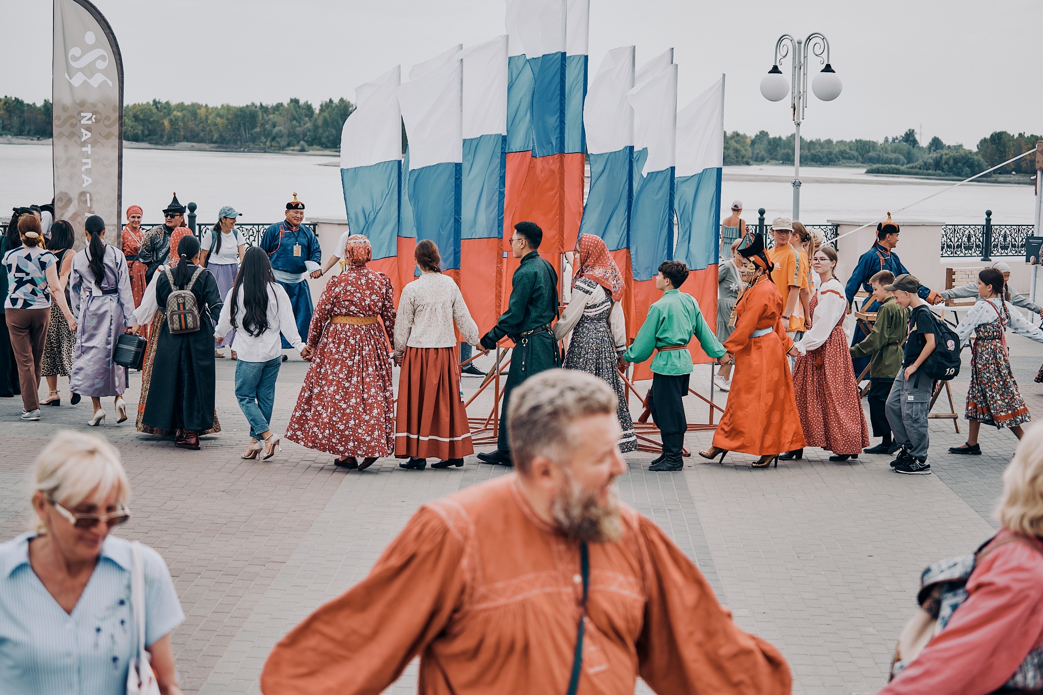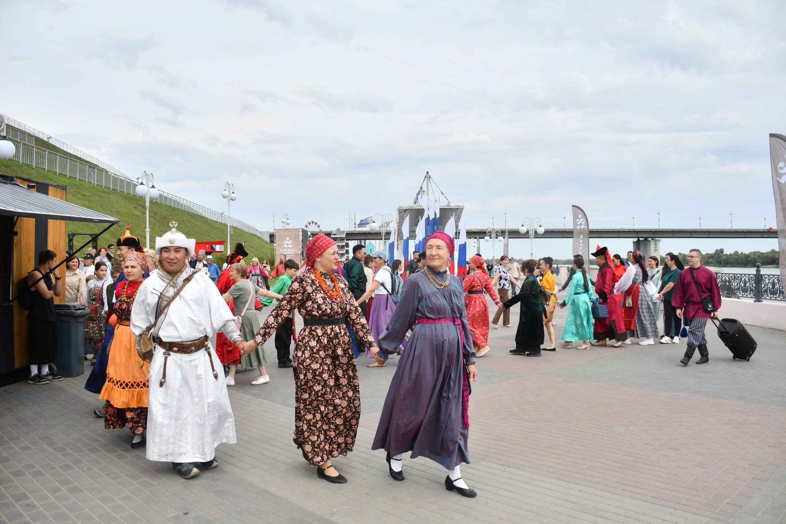 Ярким символом фестиваля стало масштабное хороводное шествие, в котором делегации всех регионов прошли единым маршем вдоль реки — зрелище по-настоящему объединяющее и трогательное.
