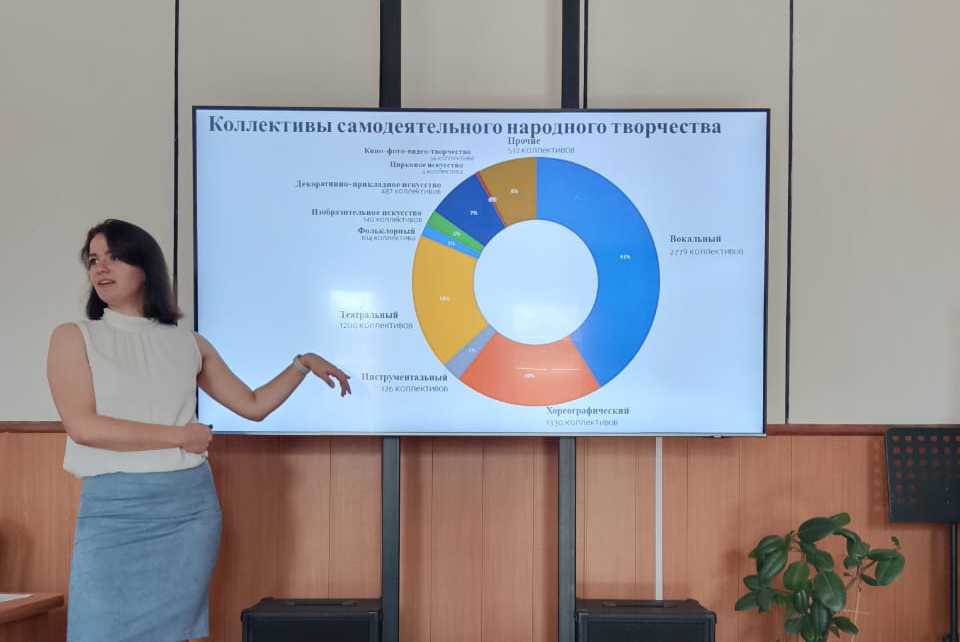 Были рассмотрены актуальные формы социокультурного обслуживания населения различных возрастных и социальных групп. Особое внимание было уделено работе с семьями, о чем подробно рассказала Наталья Михайловна Немыкина, режиссер массовых представлений отдела реализации социально-творческих проектов КАУ АГДНТ. Акцент сделан на необходимости продолжать работу по внестационарному обслуживанию жителей малонаселенных пунктов, не имеющих стационарных КДУ.