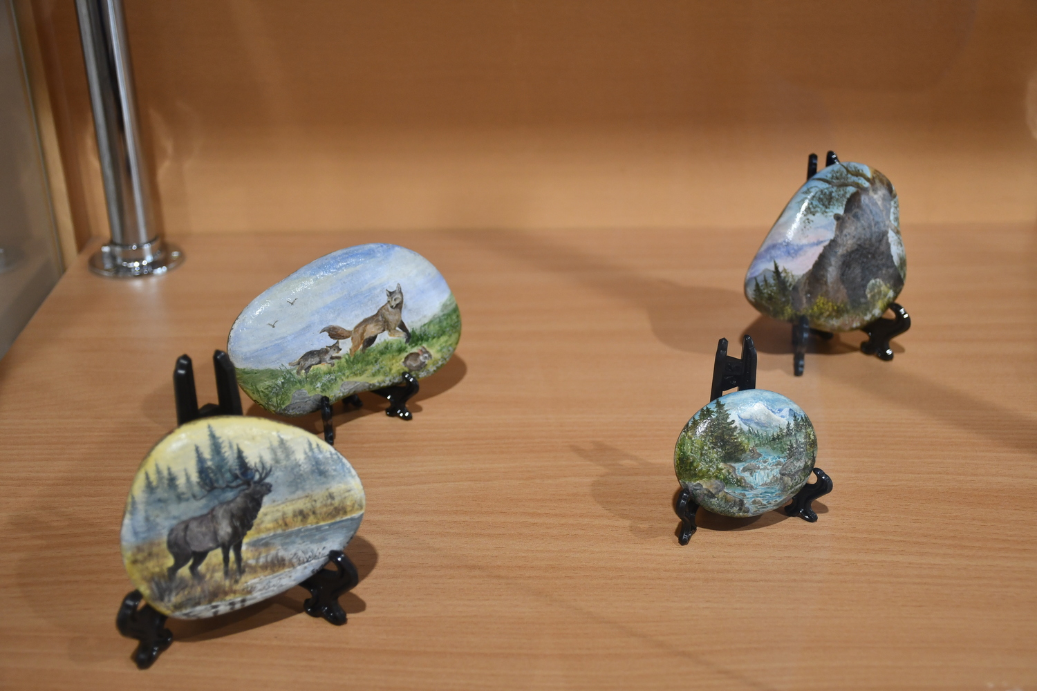 На выставке переплетаются разные виды искусства. Особое место занимают миниатюры на камнях, где природные формы превращаются в законченные художественные образы. Работы требуют внимательного рассмотрения — настолько детально проработаны элементы природы. Каждое украшение продолжает традиции камнерезного искусства Алтая в современном прочтении.