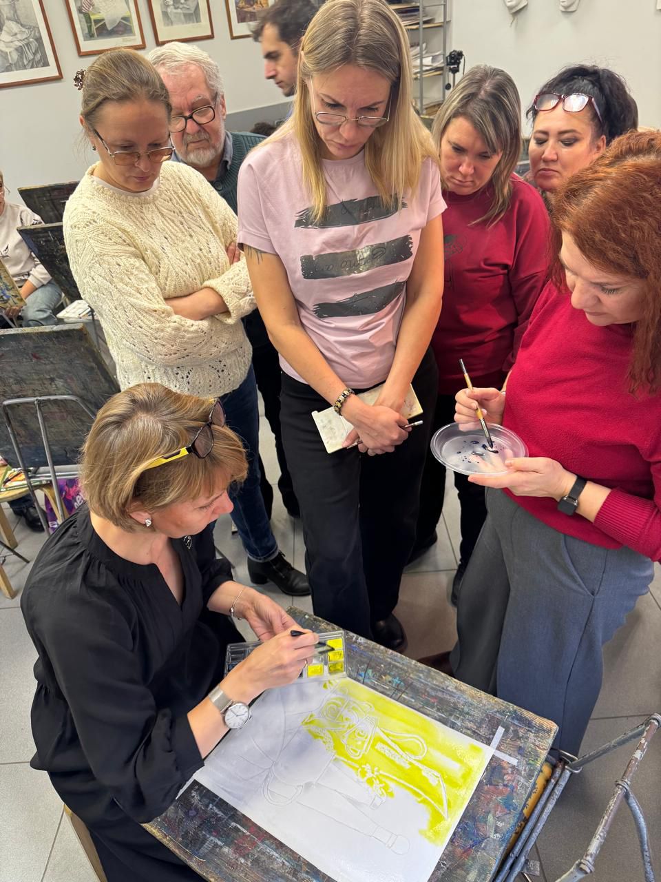 Три насыщенных дня провели преподаватели Новоалтайского государственного художественного училища, члены Союза художников РФ Надежда Зеленая и Анна Торопова. Педагоги совершенствовали навыки работы с акварелью, изучали техники смешивания цветов и композиционные приемы, а также углублялись в тонкости рисунка, построения и передачи объема.