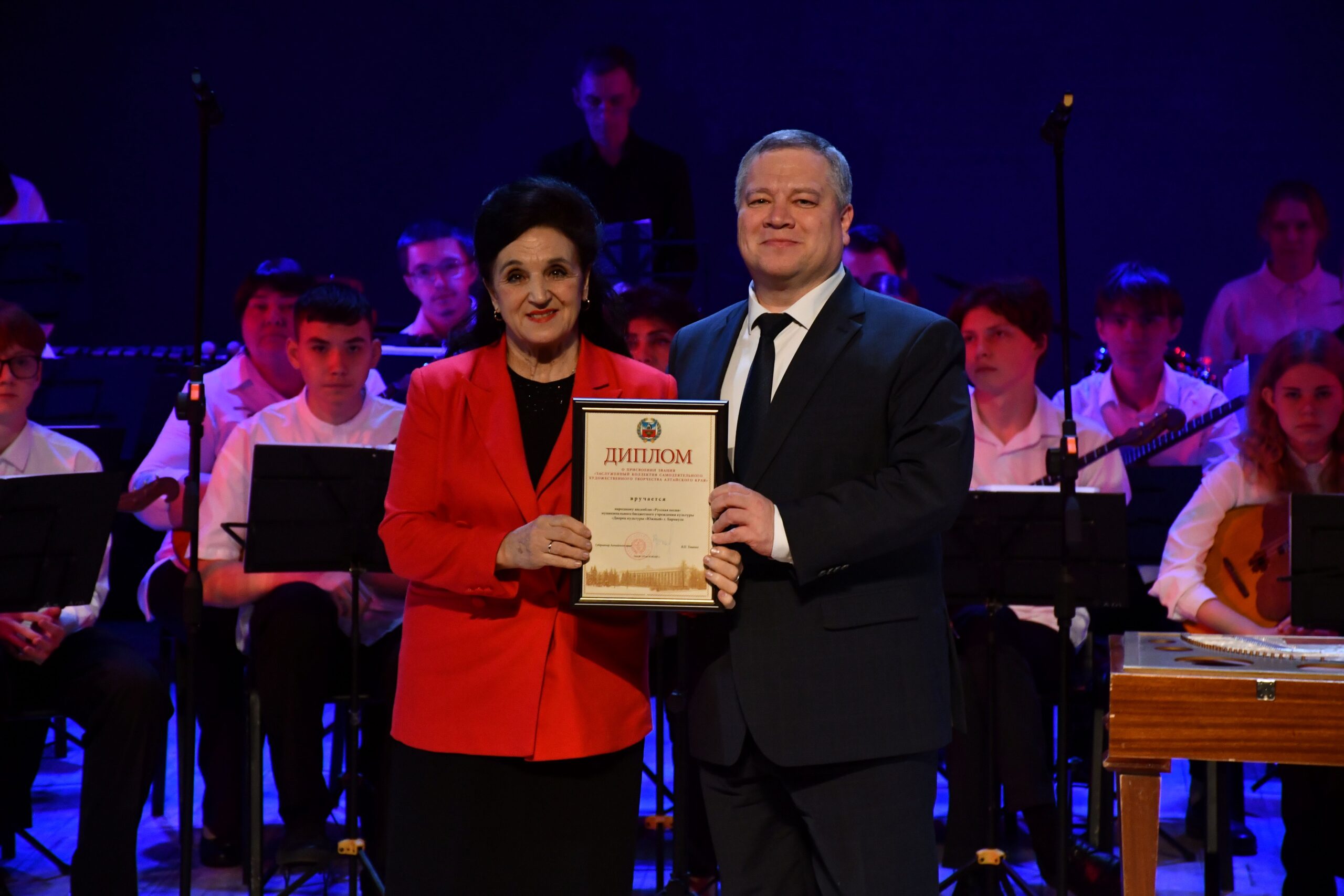 По поручению губернатора Алтайского края Виктора Томенко Юрий Абдуллаев вручил артистам дипломы о присвоении званий. «Заслуженный коллектив самодеятельного художественного творчества Алтайского края» — народному ансамблю «Русская песня» муниципального бюджетного учреждения «Дворец культуры «Южный» Барнаула, руководитель — Булгакова Татьяна Петровна.