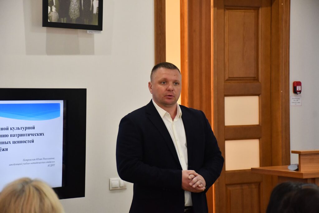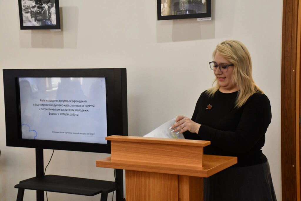 Заместитель директора АГДНТ Марина Литовко представила современные форматы патриотического воспитания — от федеральных акций до практик районных Домов культуры. Ведущий методист отдела реализации социально-творческих проектов АГДНТ Нелли Зяблицкая рассказала на роли культурно-досуговых учреждений в формировании ценностей и методах работы с молодёжью.
