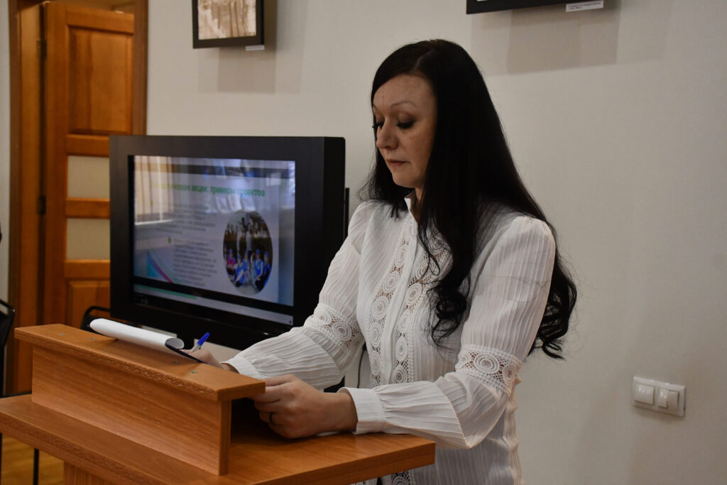 Заведующая учебно-методическим отделом АГДНТ Юлия Петровская рассказала о задачах государственной культурной политики в сфере патриотического воспитания, познакомила коллег с нормативно-правовыми актами и перечнем 17 традиционных российских духовно-нравственных ценностей, на основе которых должна строиться работа учреждений культуры.