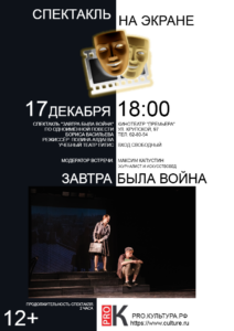 17 декабря в 18:00 завершаем второй сезон проекта «Спектакль на экране» совместно с порталом «Культура.РФ» и представляем спектакль «Завтра была война» (12+) на большом экране.