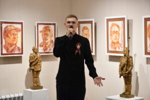 Работы, посвященные Великой Отечественной войне, представили скульптор-монументалист Михаил Кульгачев, член Союза художников России, и его сын скульптор Сергей Кульгачев.
