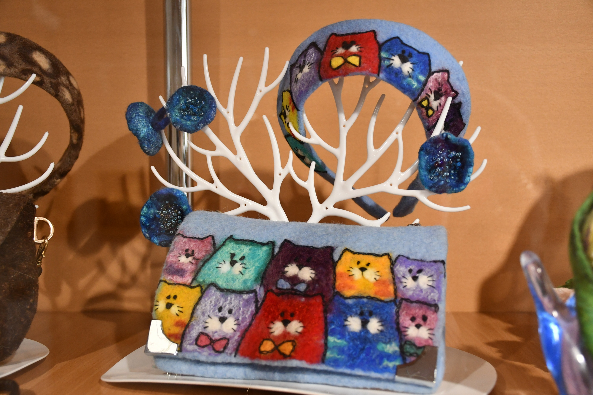 Гости увидят работы, выполненные в техниках: войлоковаляние, керамическая флористика, роспись по камню.