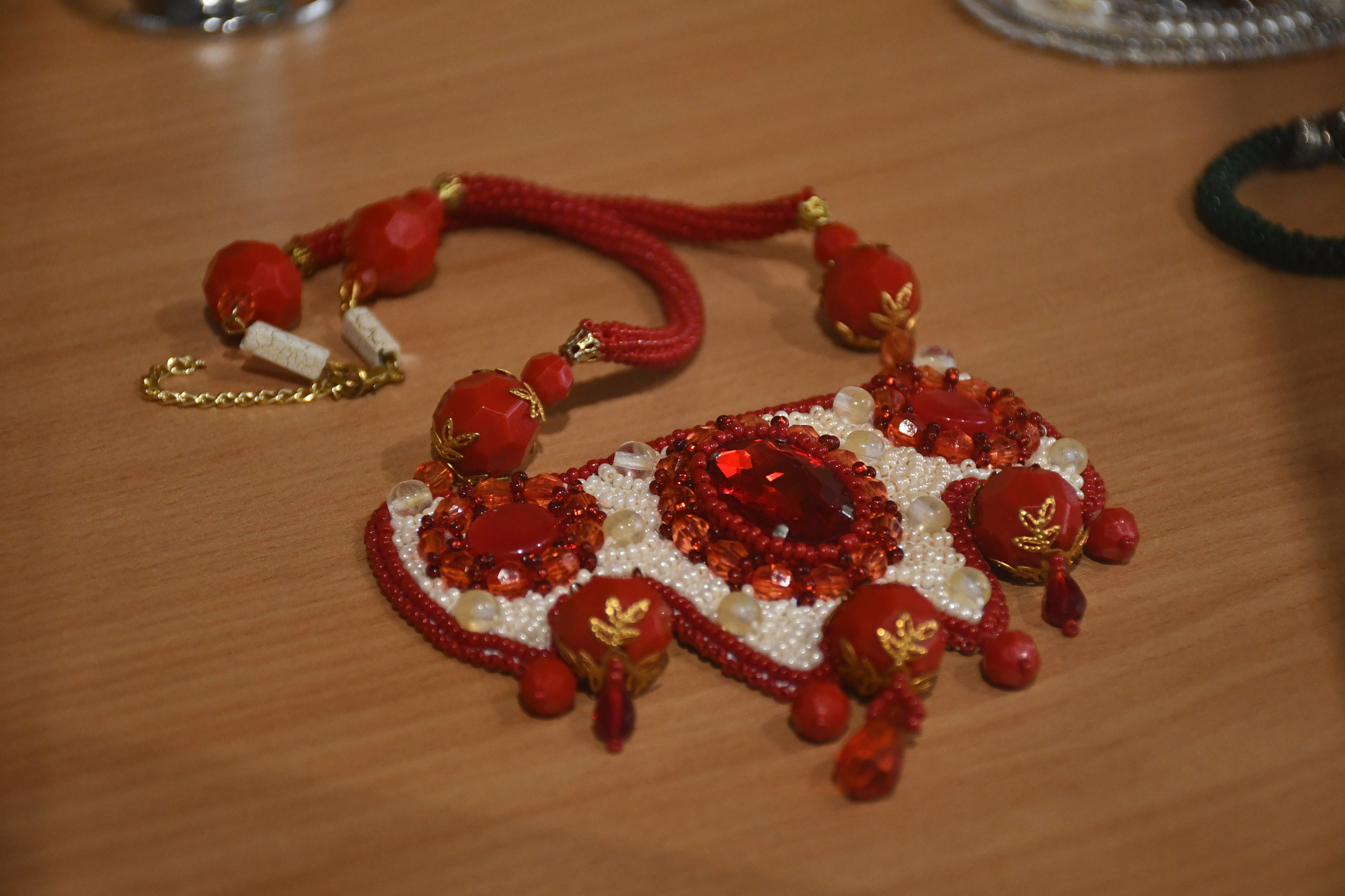 На выставке демонстрируются работы в технике «бисероплетение» мастеров Светланы Викторовны Искриной (Чарышский район, Алтайский край) и Натальи Николаевны Баррера-Гарсия (г.Барнаул), а также вышитые бисером уникальные картины мастера Любови Ивановны Березиковой (г. Барнаул).