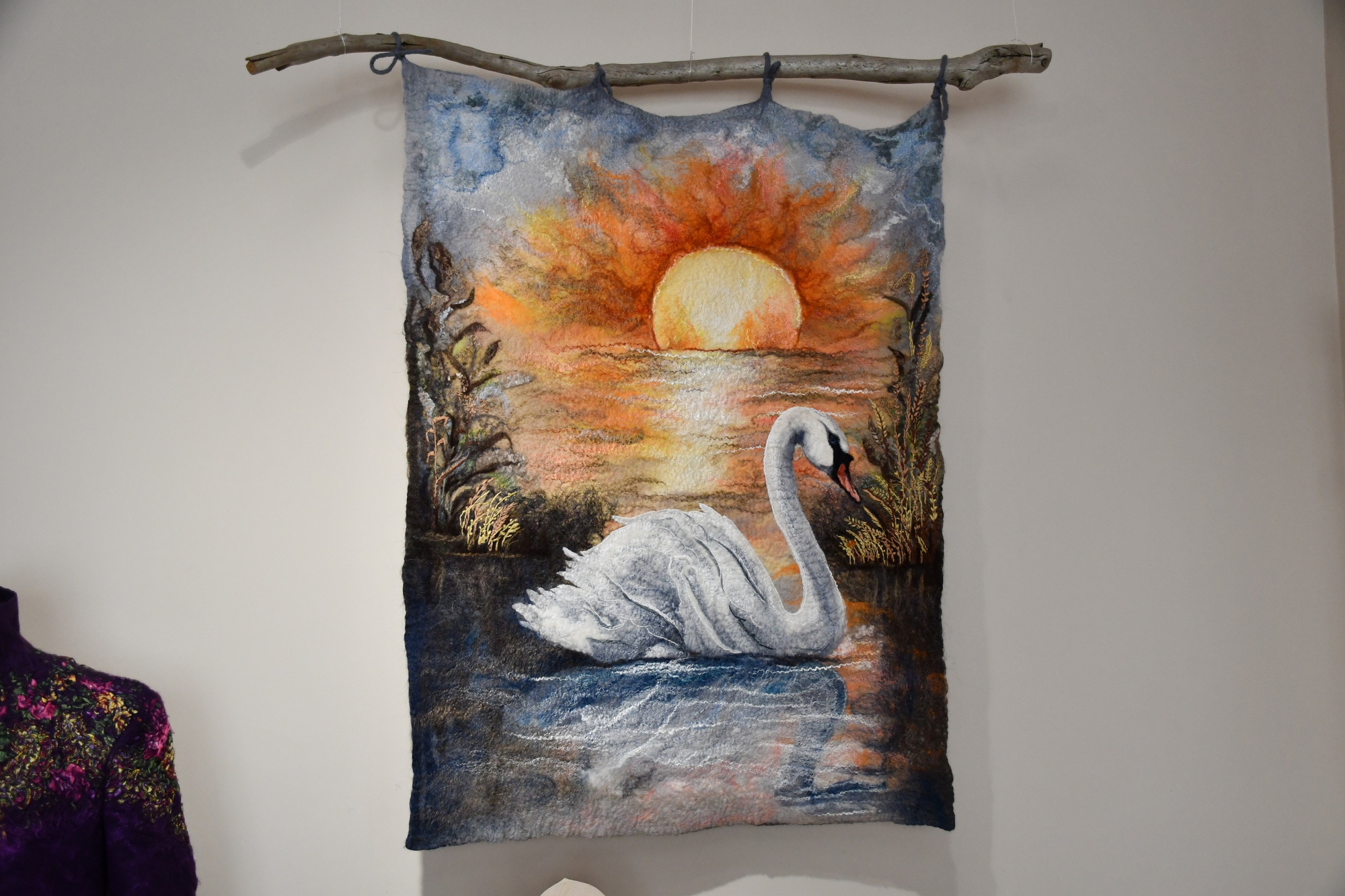 Наталья Веремей из Славгорода свое первое изделие в технике «валяние на шелке» сделала около восьми лет назад. «Я каждый день открываю для себя что-то новое. Приглашение на выставку стало стимулом для изготовления панно. Удовольствие творить нельзя сравнить ни с чем. Творить не устану, покоя не знаю!» – сказала мастерица в своем эмоциональном выступлении.