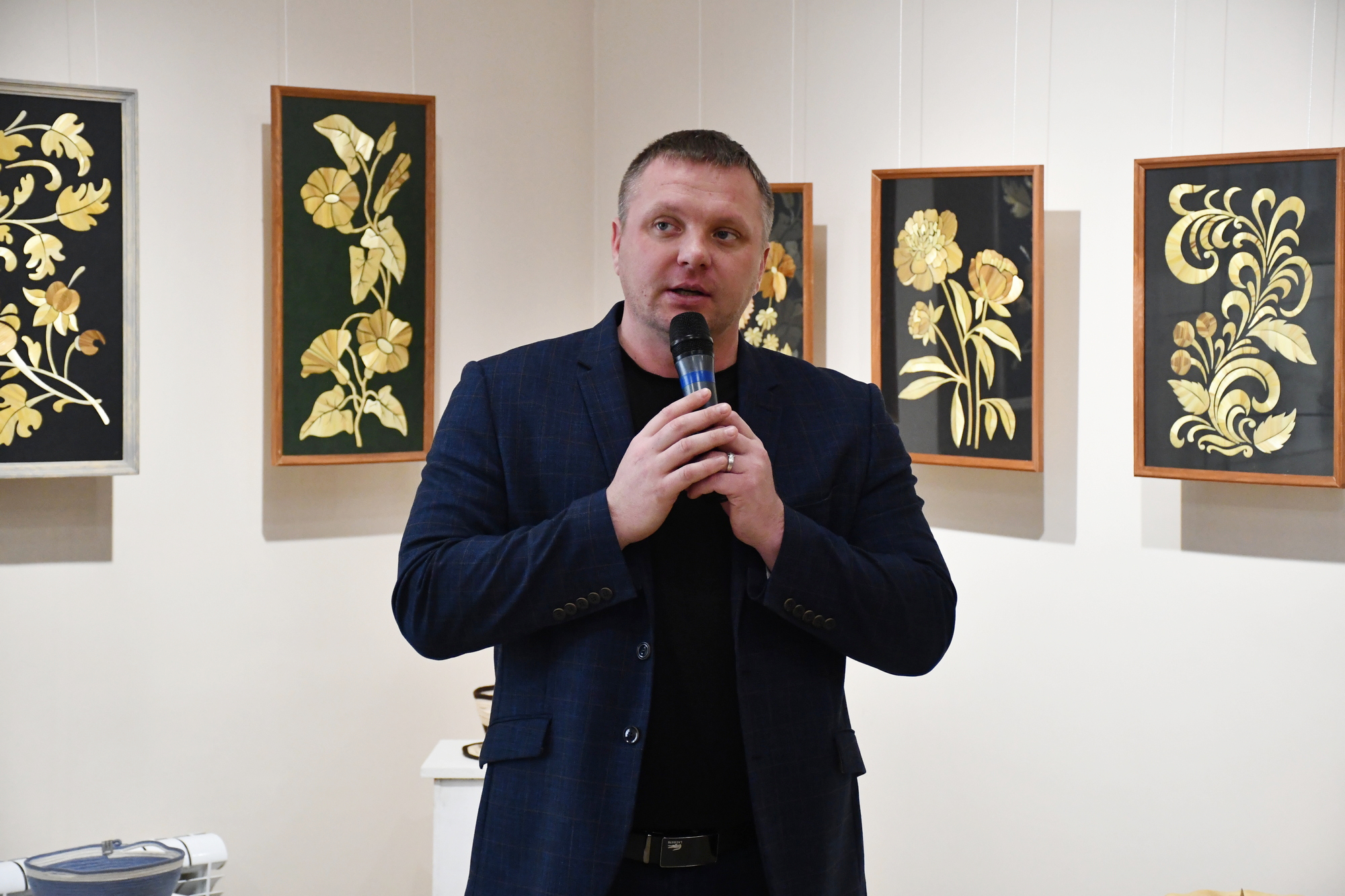 Приветственным словом открыл выставку директор Алтайского государственного Дома народного творчества Алексей Панюков, выразив благодарность мастеру за предоставленные для экспозиции уникальные работы.