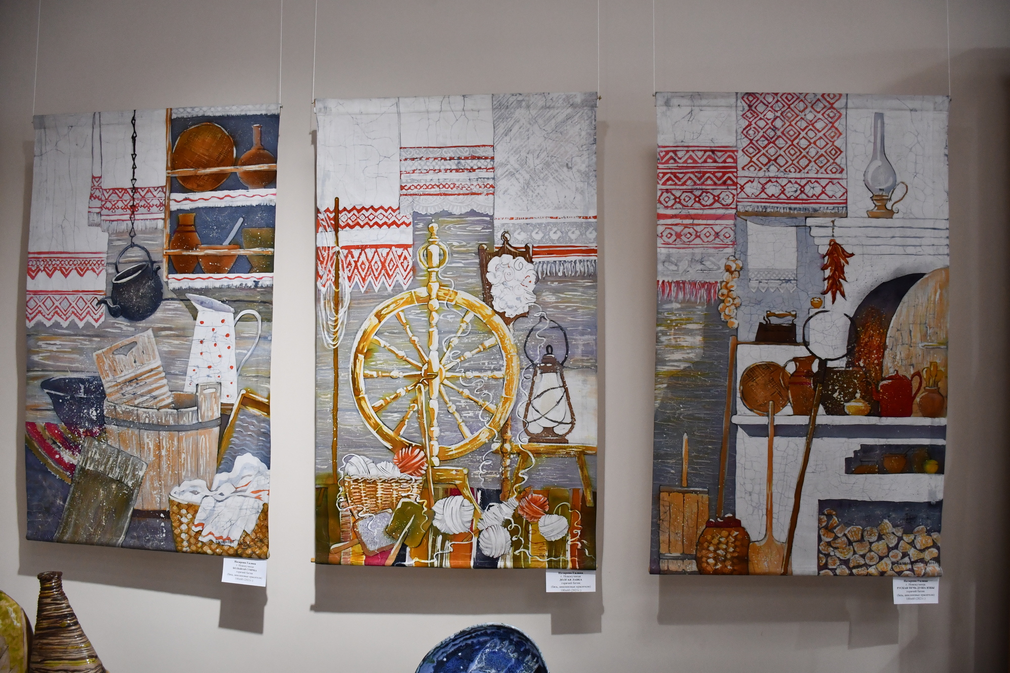 На выставке экспонируются работы мастеров декоративно-прикладного искусства Натальи Петровой, Любови Ивановой, Ольги Молоковой.
