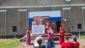 В фойе Дома культуры была представлена настоящая шкура медведя, предоставленная егерем из Голухи Александром Мелешевым. Для детей организовали экологическую игру с участием сказочного персонажа — бабушки Яги.