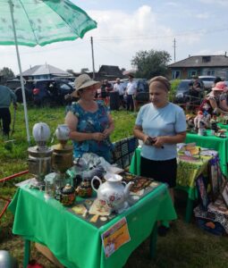 Культурная программа включила выставку старинной русской утвари, концерт местных исполнителей и познавательный рассказ об истории самовара. Для гостей работали площадки с шашлыком, сладкой ватой и батут для детей. Особое внимание привлекла благотворительная ярмарка «Для счастья многого не надо» в поддержку участников СВО, организованная волонтерской группой «Приближаем Победу».
