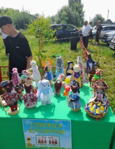 Выставлялись куклы ручной работы, выполненные мастерами села Каменушка и поселка Авдеевская База. Эти изделия отражали красоту и богатство русских традиций. Также состоялось зрелищное представление: демонстрация мастерства фланкировки представителями Алтайского войскового казачьего округа. Ловко вращая шашки и демонстрируя виртуозность владения оружием, казаки поражали публику своими навыками.