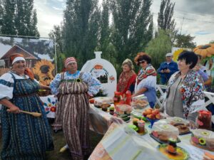 Для всех желающих работали тематические площадки: выставка цветов, мастер-классы, выставка народных промыслов «Традиция», благотворительная ярмарка-продажа в помощь СВО «За наших», а также фотозоны, передающие дух старины и колорит села. Хлебосольные хозяева накрыли щедрый стол с разнообразными блюдами.