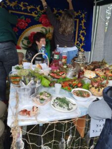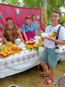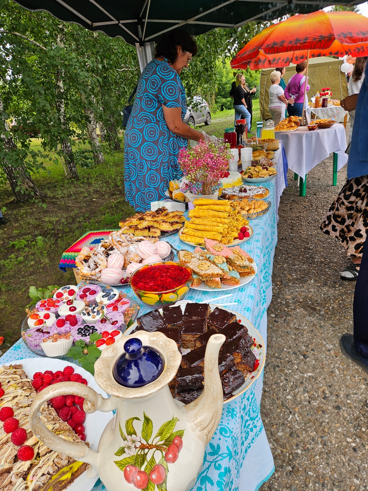 Гостей ожидала разнообразная программа, где каждый мог насладиться кулинарными шедеврами, представленными местными умельцами. На столах были выставлены вкусные угощения, а всю округу наполнял аромат свежезаваренного чая, что создавало уютную домашнюю атмосферу.