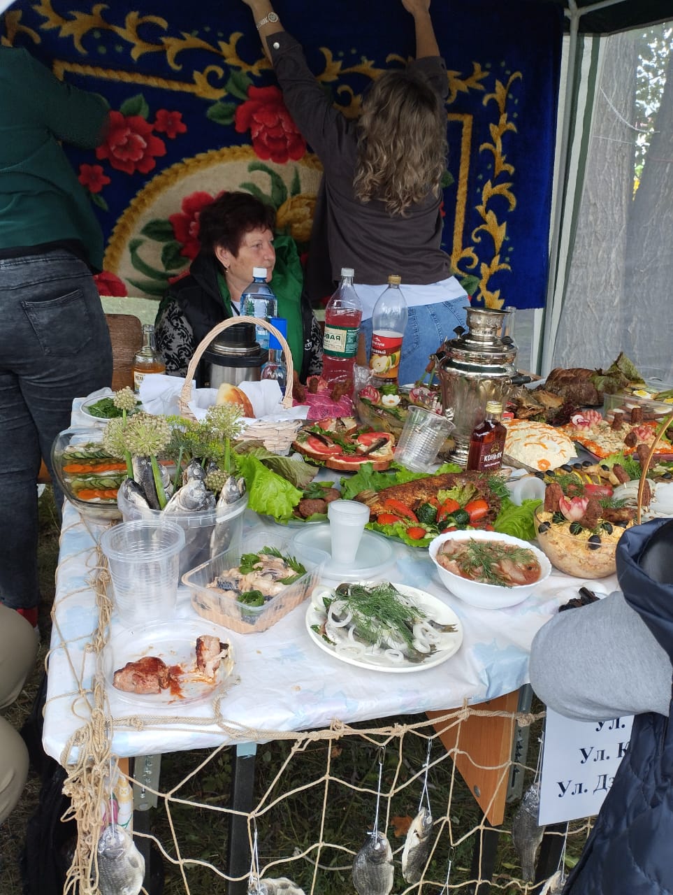 Гостей праздника угощали рыбными блюдами. На костре готовилась ароматная уха, настоящим кулинарным чудом стал пирог в форме рыбы.