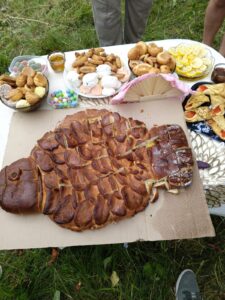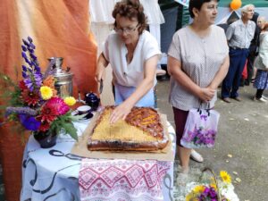 Концертная программа с участием местных артистов создавала праздничное настроение. Кульминацией стал большой русский пирог, которым угостили всех желающих.