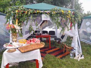 Для гостей работали аттракционы, фотозоны с тантамаресками и «Доска пожеланий». Во время концертной программы проходили народные игры «Ручеек», «Перетягивание каната» и тематическая игра «Огурец».