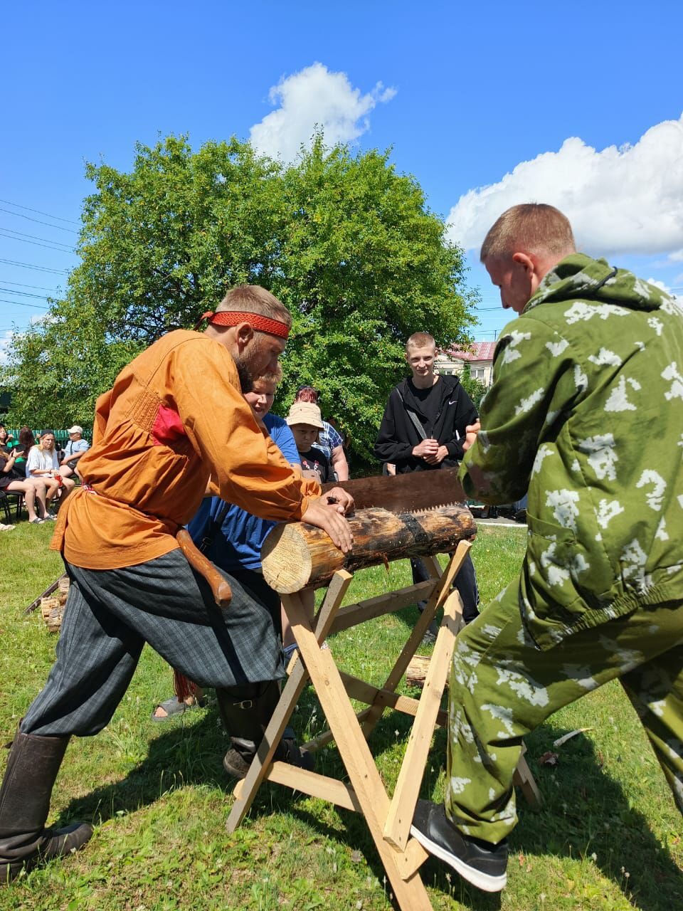 В ходе праздника проводились конкурсы по распиливанию и колке дров, правильной заточке пил и другие. Семейные пары, отмечающие в этом году свадебные юбилеи, складывали из дров поленницу. Зрители узнали, что пила не только пилит и используется в хозяйственных целях, она ещё может служить и музыкальным инструментом. Артём Ненашев продемонстрировал, как можно выводить задушевную мелодию на двуручной пиле.