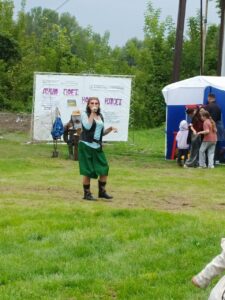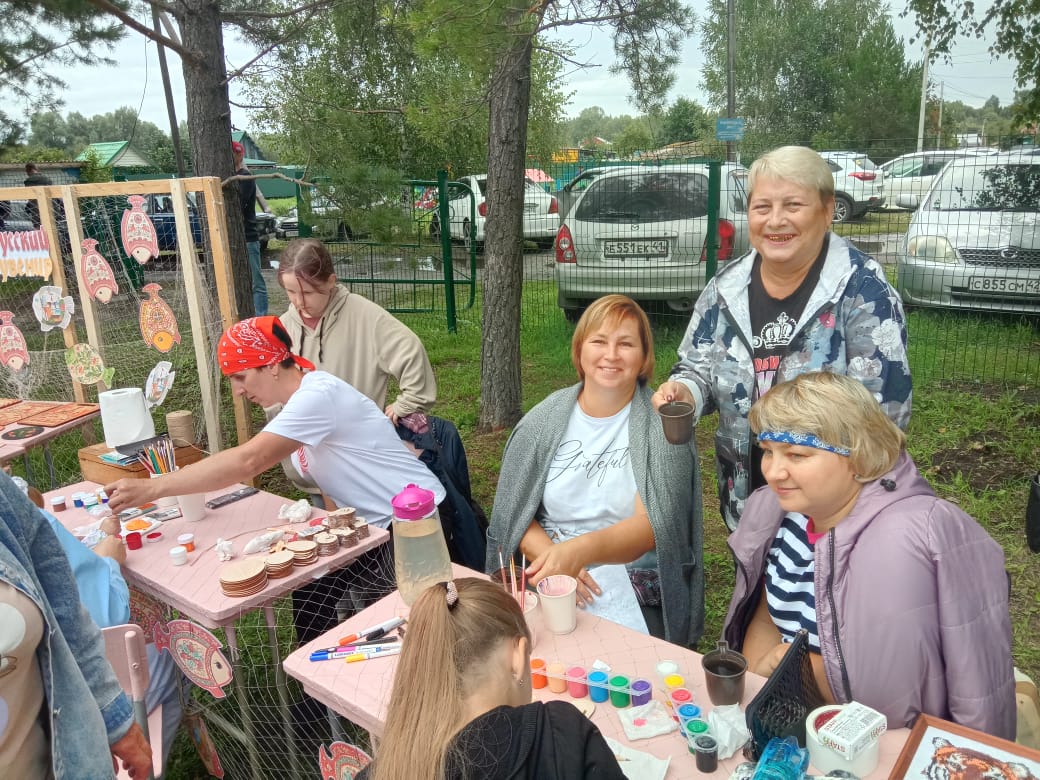 Гостей ждали тематические фотозоны, выставки декоративно-прикладного искусства и мастер-классы от мастериц из Бийска и Верх-Обского. Для взрослых приготовили игры: «отпроситься на рыбалку», натаскать воды с коромыслом, забить гвоздь с одного удара молотка, наколоть дрова, повесить правильно бельё после стирки и др. Для детей работала детская игровая зона, а самодеятельные артисты выступили с концертной программой.