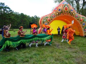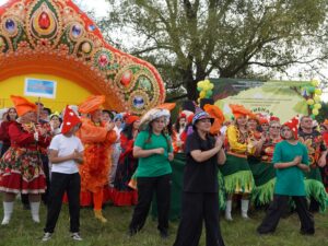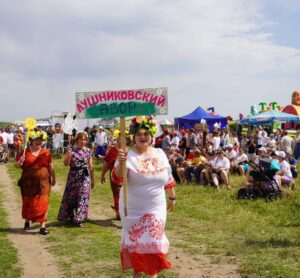Народное гулянье началось с шествия девяти делегаций из сел Тальменского района, каждая из которых представила тематические палатки, связанные с определенными национальными культурами и традициями.
