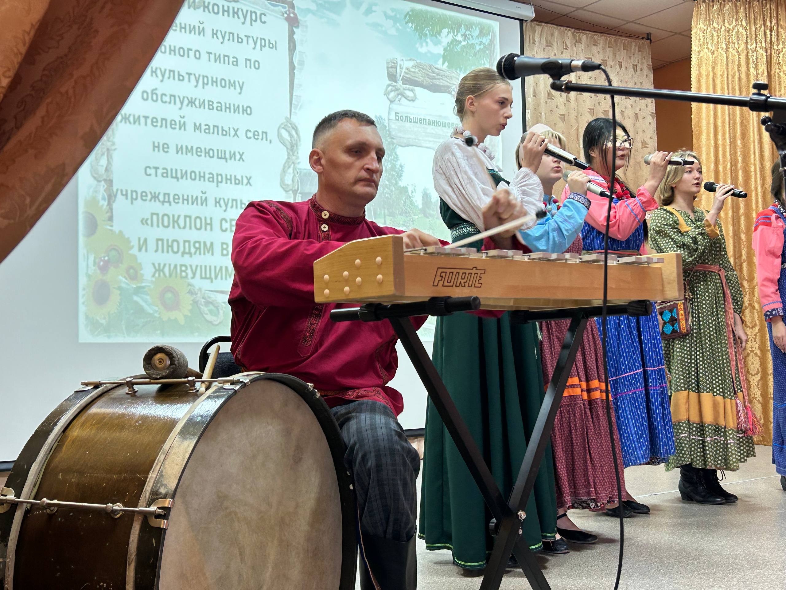 «Мы привезли на конкурс двое гуслей, балалайку, гитару, глюкофон, бас-барабан и блок-флейту. Исполняем живую музыку и популяризируем её. Будет здорово, если кто-то возьмёт с нас пример. Уже устали от минусовок! А это наше – наша культура. Мы патриоты — любим свой край, своё дело и свои традиции», — поделился Виктор Рябых, директор районного Многофункционального культурного центра Солонешенского района.