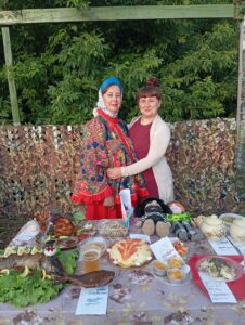 Здесь было что купить: горячие пироги с разнообразными начинками и ароматами манили к себе поклонников домашней выпечки. Участниками конкурса стали не только жители поселка, но и хозяюшки из соседних сел — поселка Малиновский и села Харитоново. Члены жюри дегустировали блюда и оценивали их красоту.