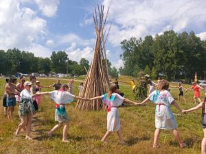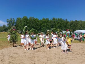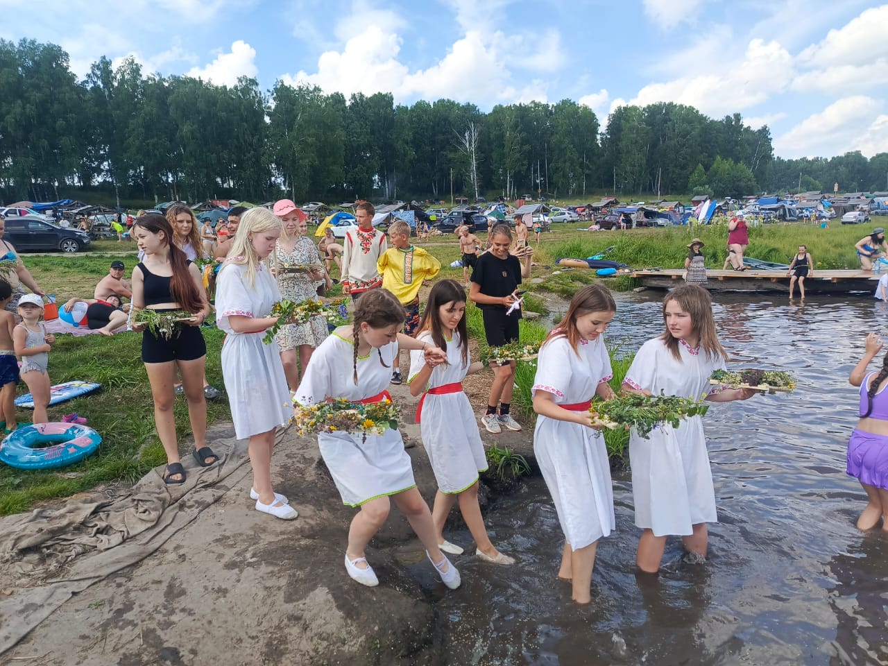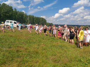 Программа мероприятия была насыщена интерактивными элементами: гости водили хороводы, участвовали в купальских играх и узнавали историю и значение праздника. В центре поляны возвышался большой купальский костер, рядом с которым проходили основные обрядовые действия. Пары прыгали через пламя костра, что считалось ритуалом очищения и привлечения удачи. Сильные духом и телом парни соревновались в богатырской силе, демонстрируя истинный боевой дух и здоровый азарт. Девушки плели венки из полевых цветов, гадали и запускали венки на воду, символизируя единение с природой.