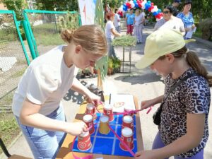 Переулок Школьный стал калейдоскопом развлечений и кулинарных открытий. На площадке «Ребриха многонациональная» можно было познакомиться с культурой разных народов и отведать блюда русской, белорусской и немецкой кухни. Детская площадка «Три кота и друзья» радовала юных гостей развлекательной программой «Котовеселье», кондитерская «В гостях у Коржика» приглашала ребят на мастер-класс «Я кондитер». Площадка «Ребрихинские авиалинии «ТудаСюда» – это тематический буфет, фотозона, конкурсы на авиационную тематику и мастер-классы по изготовлению самолетов из шаров и пилоток из бумаги. Рады были гостям также на площадках «Красота и здоровье», «Лесная сказка», «Матрёнин двор», «Цветочная поляна».