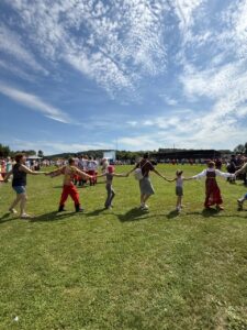 В празднике пирога приняли участие волонтёрские отряды СВО из сёл Лесное, Сростки, Заря Бийского района. На площадке волонтёры провели мастер-классы по изготовлению обереговой куклы «Подорожница», кройке и шитью верхонок, изготовлению сухого душа, плетению сетей и др. Все участники стали частью команды «Вместе ZA СВОих».
