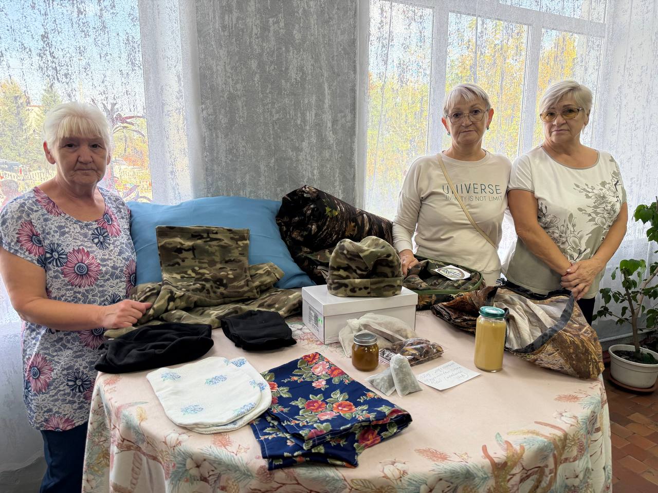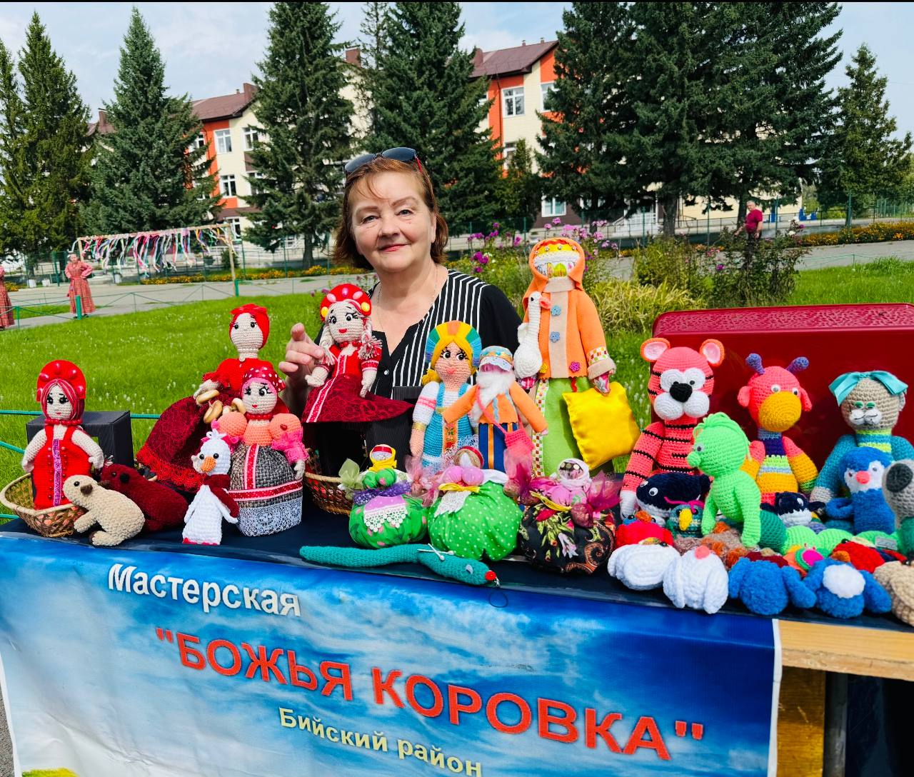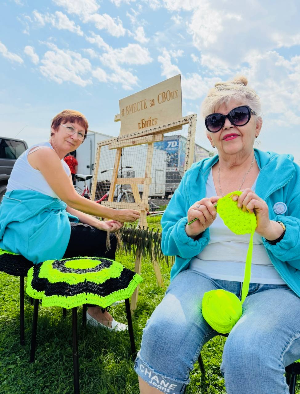 На мероприятии работали тематические площадки: творческая мастерская «Божья коровка» с куклами-оберегами, ярмарка рукоделия и площадка «Совет матерей ветеранов СВО» из Бийска. Волонтеры представили свою продукцию: одежду, сухие пайки, маскировочные костюмы, а также средства гигиены.